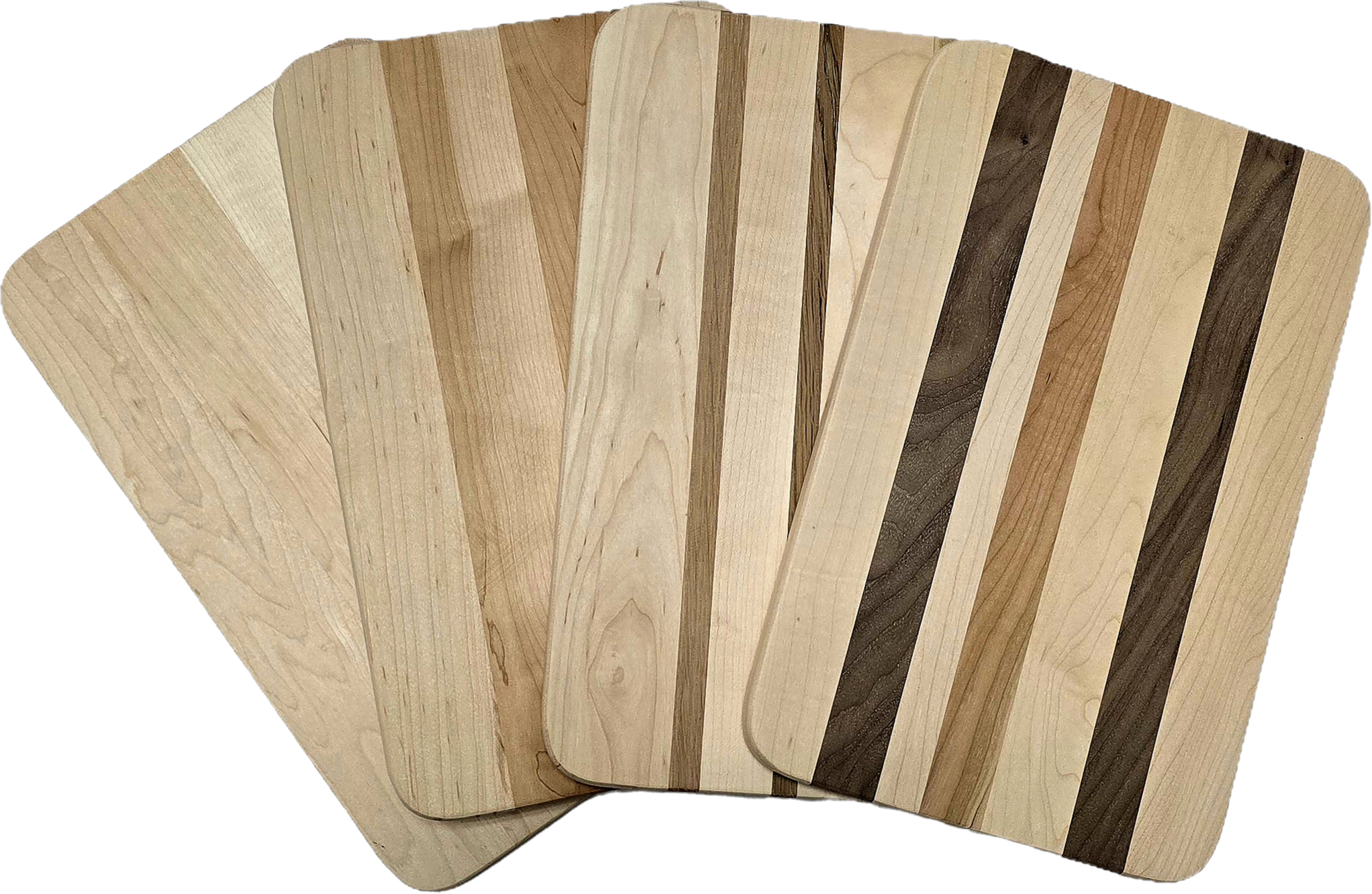 These locally made, artisan Eastern Maple hardwood boards can be used as a cutting board, or even a small charcuterie board. Notched ends for extra grip.