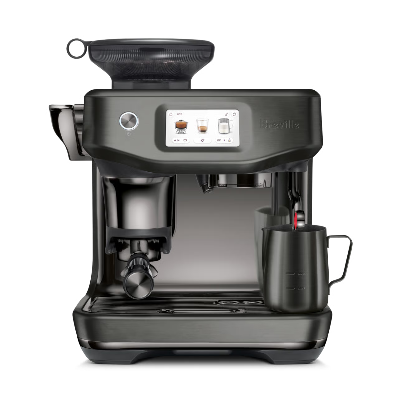Embrace style and functionality with an iconic Breville collection that shines with rich black coloured accents. This updated machine features a bevy of user-friendly features, such as step-by-step guidance and real-time feedback. The colour touchscreen displays a tutorial that guides you through the expanded menu of drinks with options to save your favourites. The Impress™ Puck System boasts intelligent dosing, precision measuring and assisted tamping to produce practically perfect pucks. The Innovative ThermoJet® heating system reaches the ideal brew temperature in just 3 seconds, which means less waiting and reduced energy consumption. The multitalented machine also offers a hands-free Auto MilQ™ milk-texturing system that optimizes steam pressure, time and temperature for plant-based milks such as oat, soy, almond as well as for dairy-based milk.