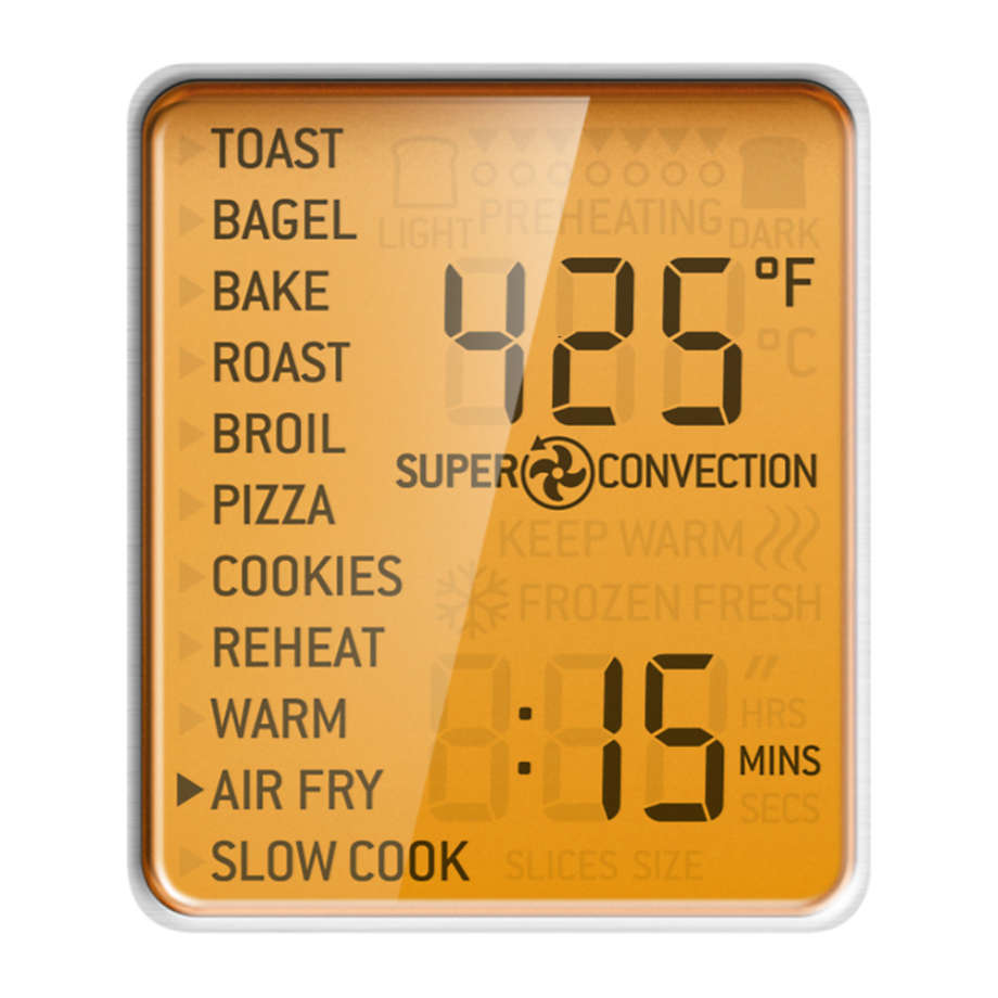 - 11 cooking functions: toast, bagel, broil, bake, roast, warm, pizza, air fry, reheat, cookies and slow cook