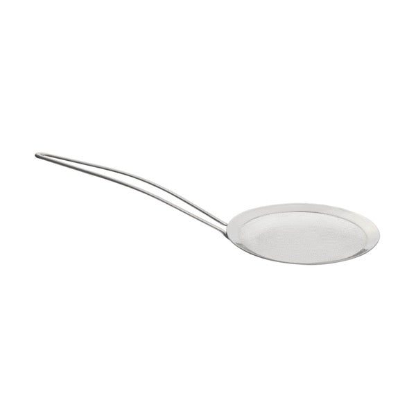 Durable cooking skimmer; ideal for straining small foods or filtering out unwanted material.