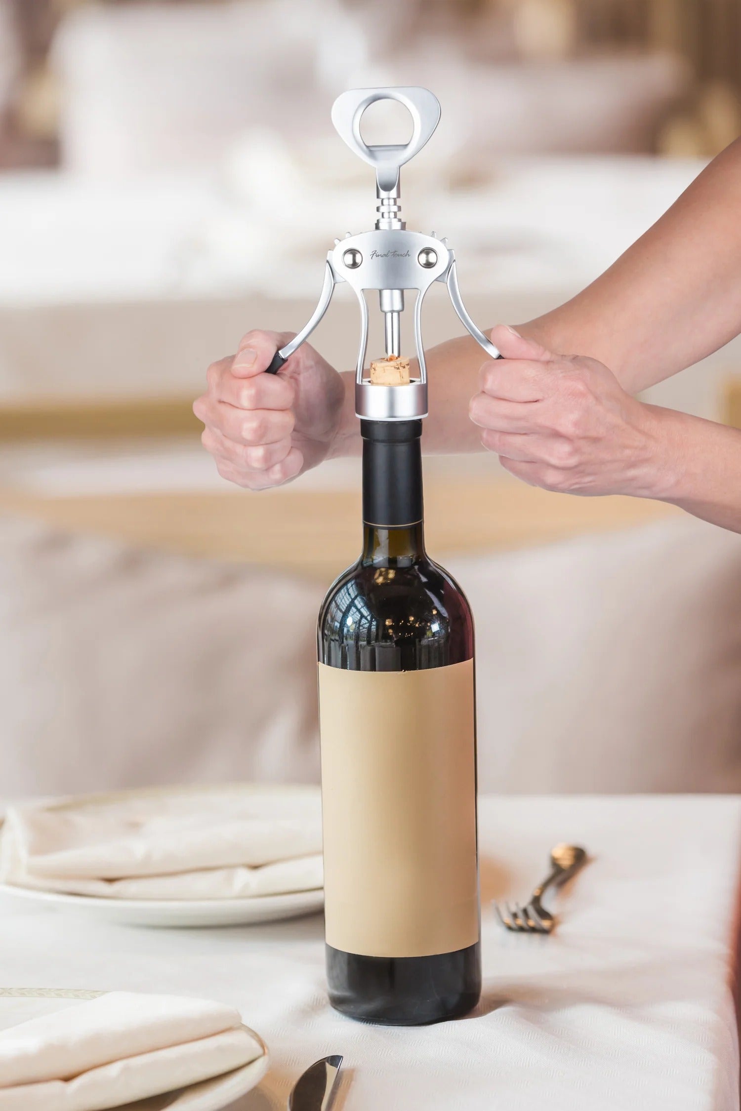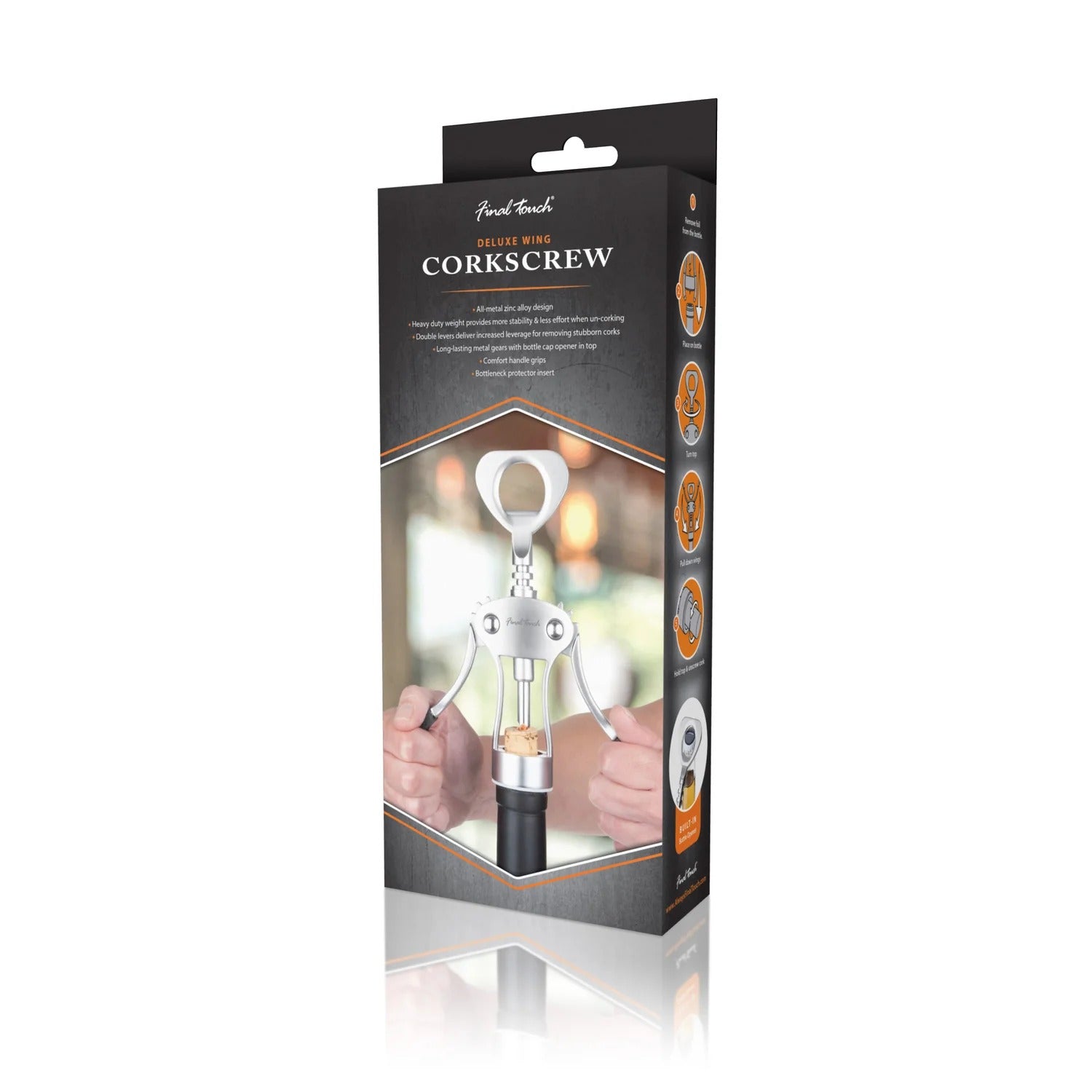 The double levers with comfort grips deliver increased leverage for removing stubborn corks and the heavy duty weight provides more stability & less effort when uncorking. All-metal zinc alloy design with long-lasting metal gears give increased durability.