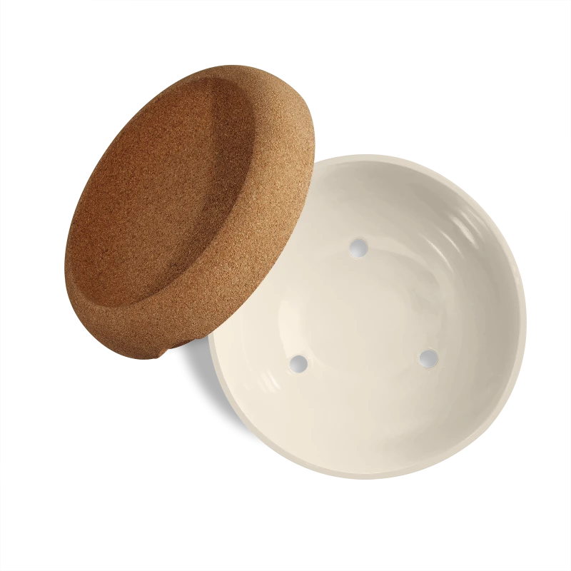 Created with a clever design and using natural materials ideal for storing fresh produce––the Deep Storage Bowl performs on 2 levels. The cork lid, which serves as a fruit bowl, provides an elegant presentation, while the ceramic base offers a space for keeping onions, beets or potatoes fresh and out of sight.