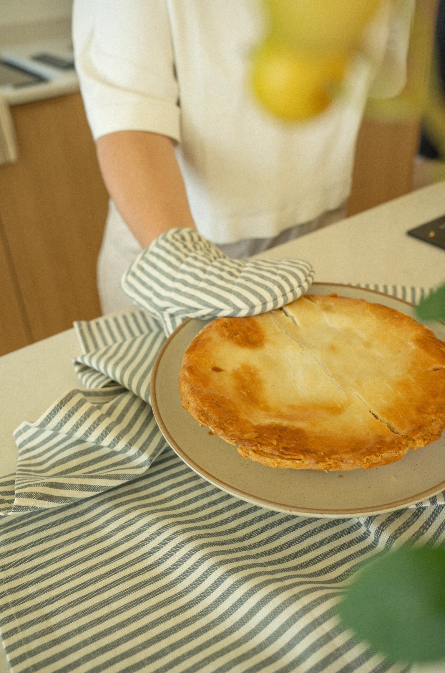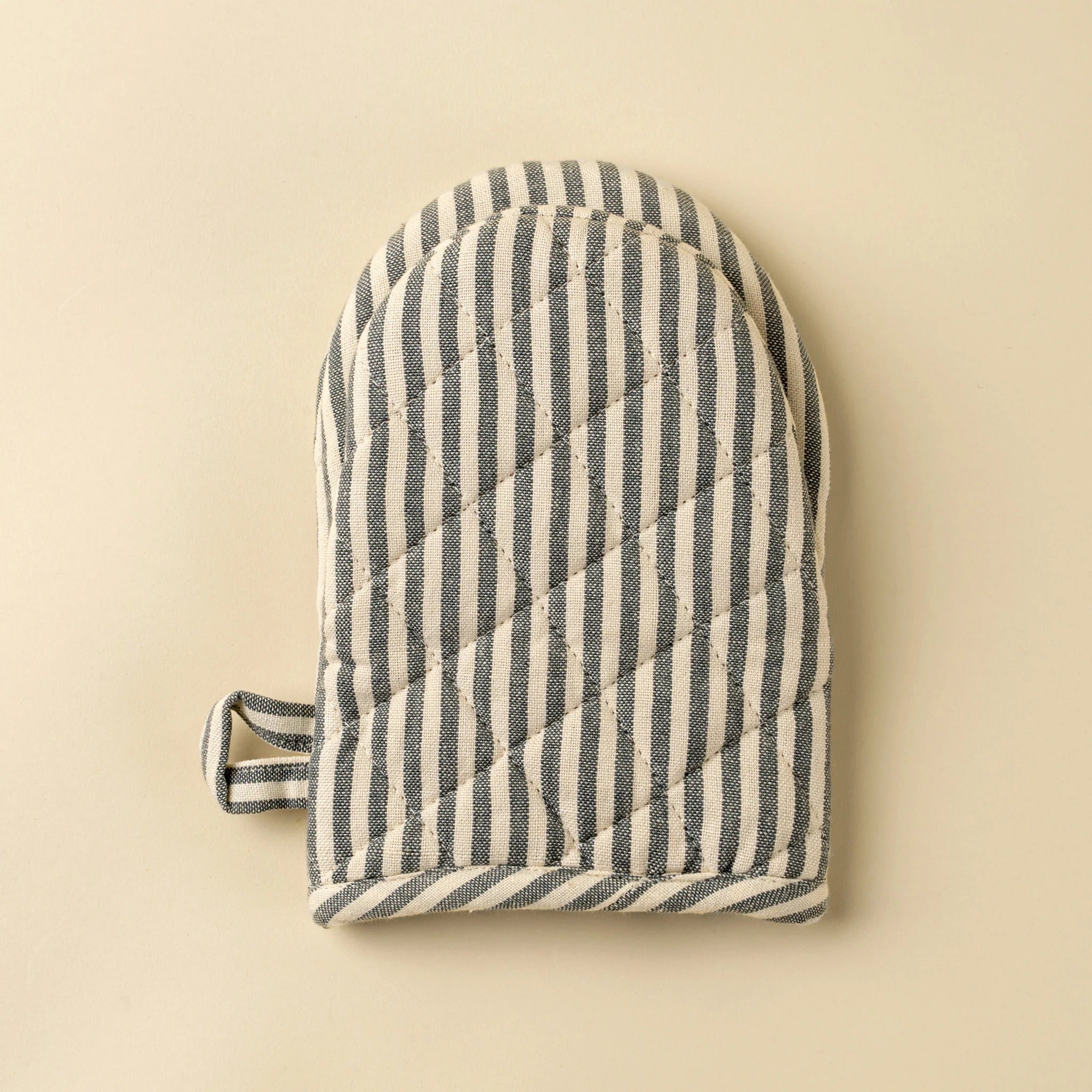 Elevate your kitchen essentials with the Hampton Stripe Oven Mitt. This oven mitt features timeless stripes and a modern European silhouette that fits comfortably on any hand. The soft yet durable fabric and handcrafted loop make it as practical as it is beautiful. It's perfect for the well-dressed kitchen.