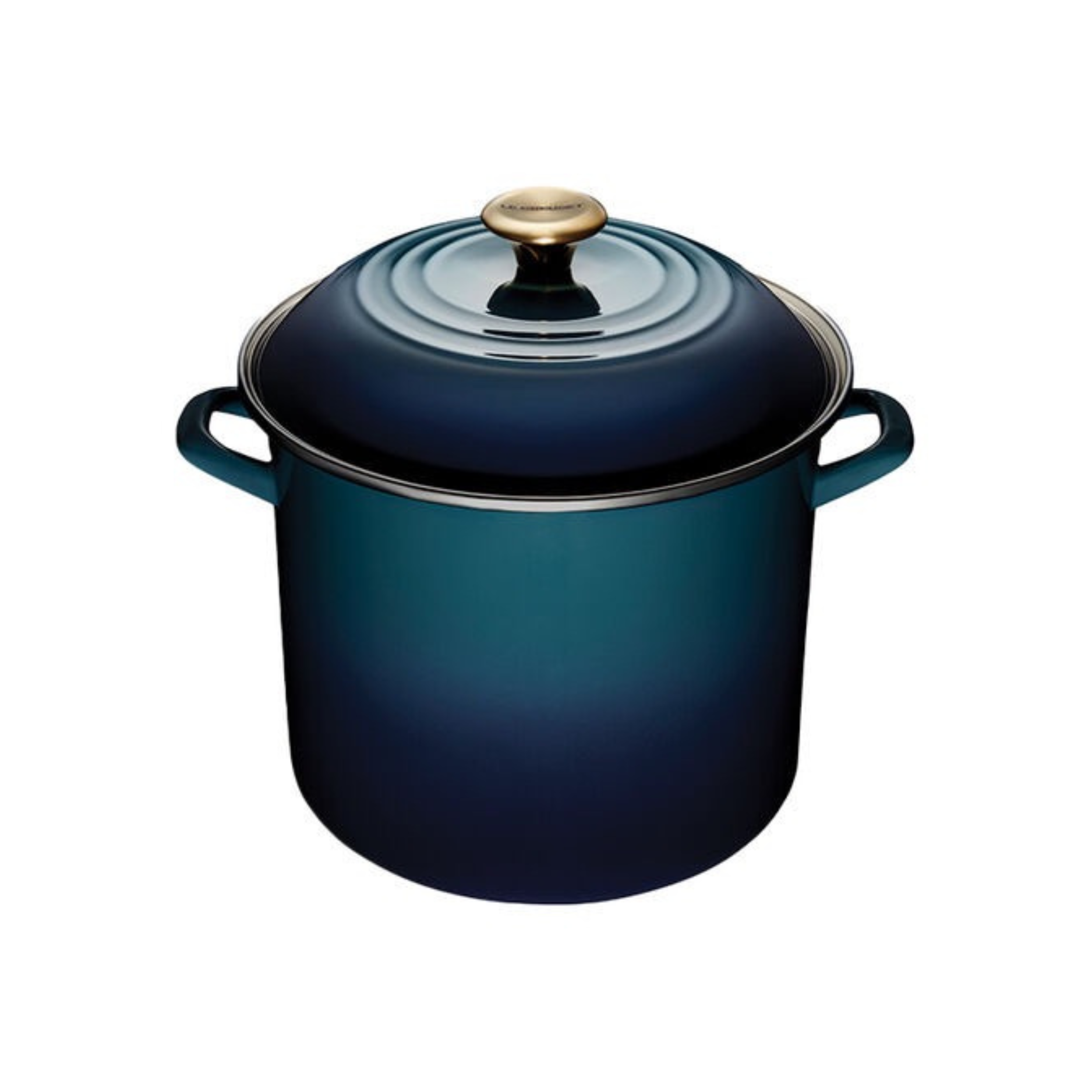 The Le Creuset Stockpot is crafted from heavy-gauge steel and coated with a colourful porcelain enamel and makes preparation hassle-free - whether boiling water for a pasta dinner or simmering a hearty soup or stew all afternoon. Each pot's high-profile design and tight-fitting lid create an environment that limits evaporation while infusing heated liquids through all layers of ingredients.