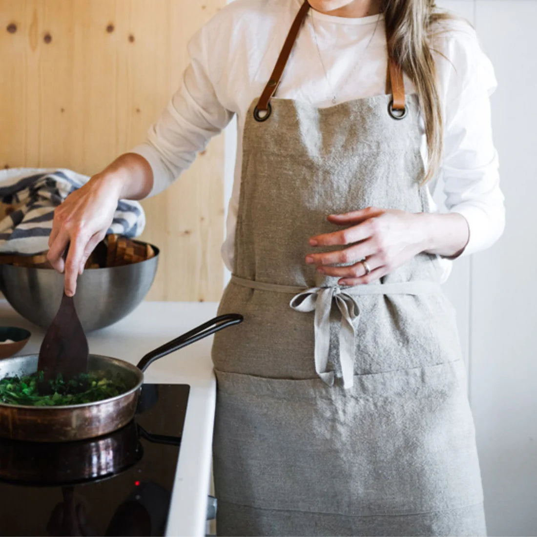 A gender-neutral heavy-duty linen luxury apron! Two front pocket help to keep the essentials you might need for the cooking process. Easy to adjust, stylish, and highly durable 100% linen material.
