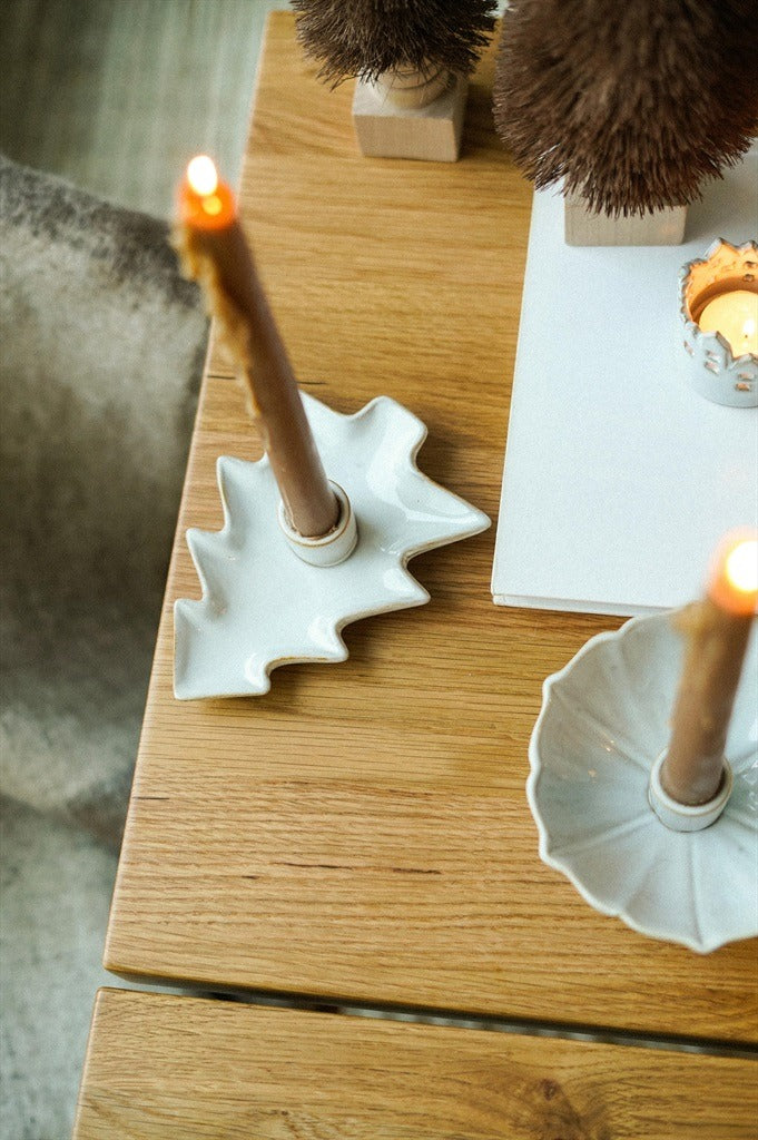 The Lotus Candleholder in White is a beautifully crafted ceramic piece designed to bring elegance and practicality to your candlelit moments. Finished in a smooth white glaze, its lotus-inspired shape creates a shallow bowl effect, effortlessly catching drips from tapered candles. Whether placed on a dining table, mantel, or bedside, this candleholder adds a refined, serene touch to any space.
