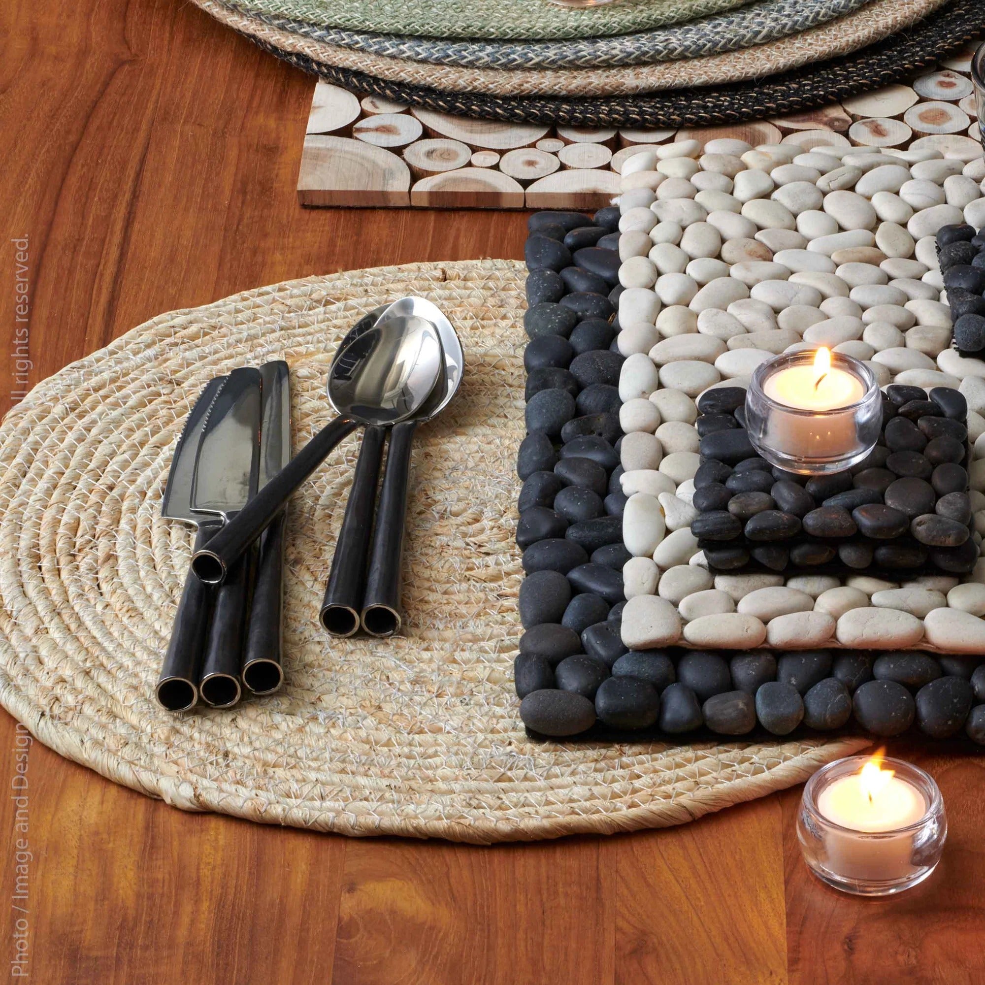 Introducing the Maiz™ Corn Husk Placemat: effortlessly combining sophistication and sustainability. Handmade with dried corn husks that are turned into a twine like material that is then handwoven into these beautiful placemats. This eco-friendly placemat has a subtle neutral tone that works well with a variety of décor themes. From farm to table, the Maiz™ Placemat will be an elegant foundation for any tablescape.