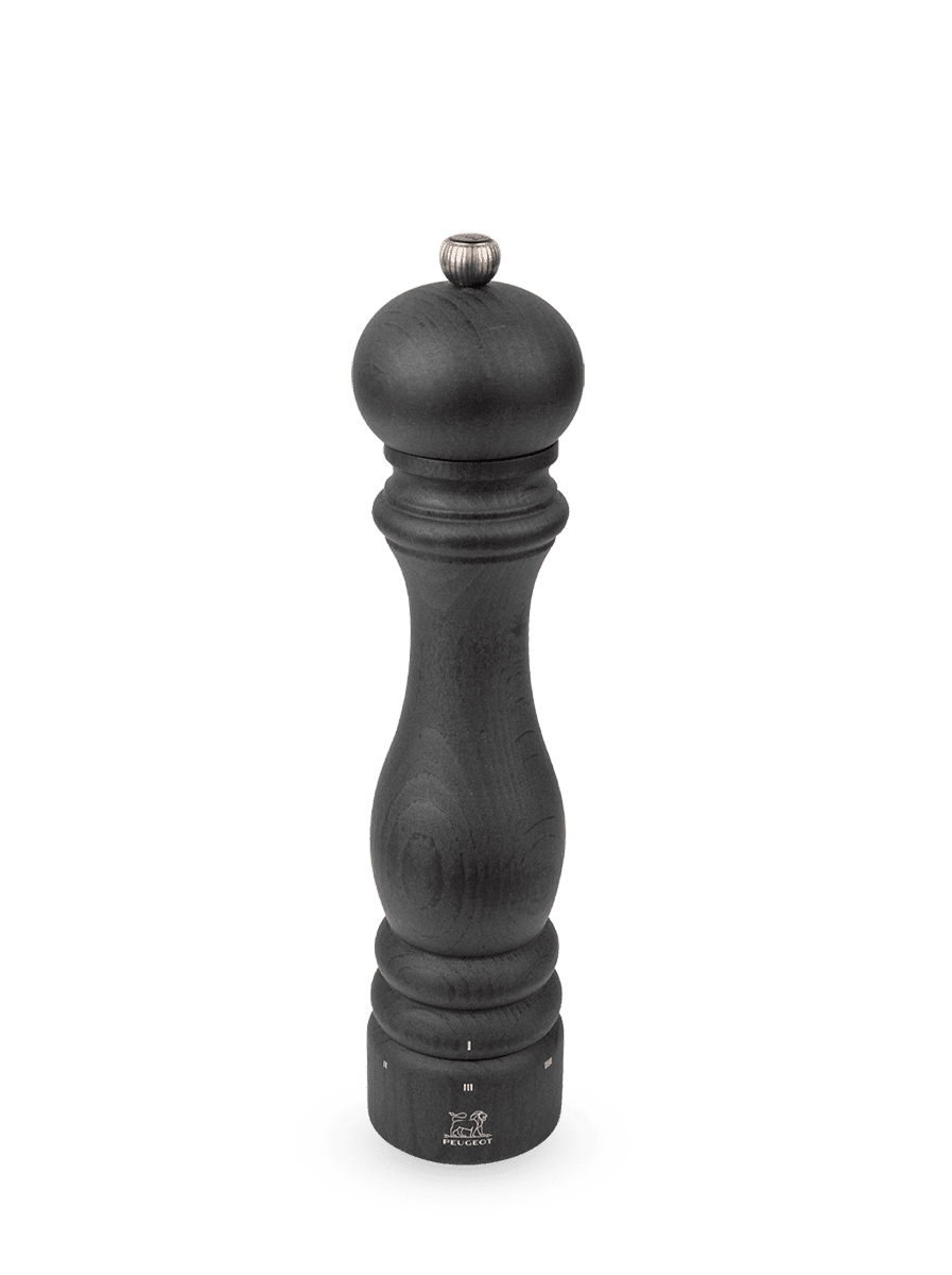This new limited edition graphite finish brings a sublime touch to the grain of the wood and gives the Paris mill a bold and contemporary feel. In addition to being the perfect instrument, these iconic pepper mills from Peugeot are an ultra-trendy decorative item. The lifetime-guaranteed mechanism is made from steel in our workshops and has been designed to reveal all the aromas of black, white, green and red pepper, as well as pink peppercorns (if mixed with another pepper) and coriander seeds. With its u'Select adjustment system for accurately changing the grind setting, this mill is a must-have. Simply turn the graduated ring at the base of the mill and choose any of the settings between 1 and 6 (1 is the finest).