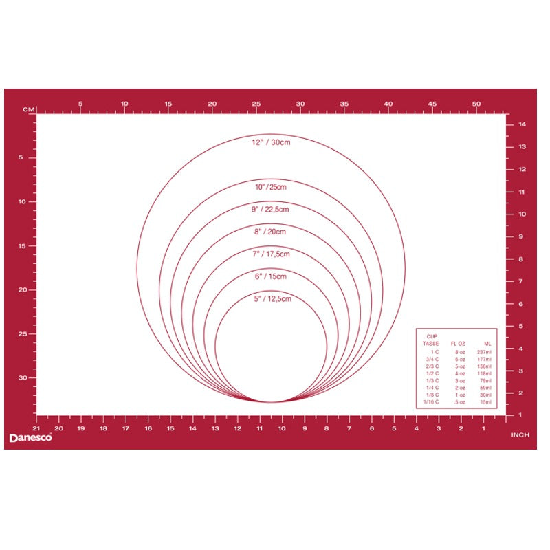- Pastry mat, 60 x 40cm (23.5 x 15.75”), silicone.