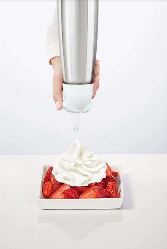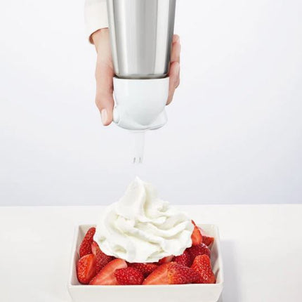 For easy preparation of fresh, pure whipped cream. Ready in just a few seconds and can be kept in the refrigerator for up to 10 days.