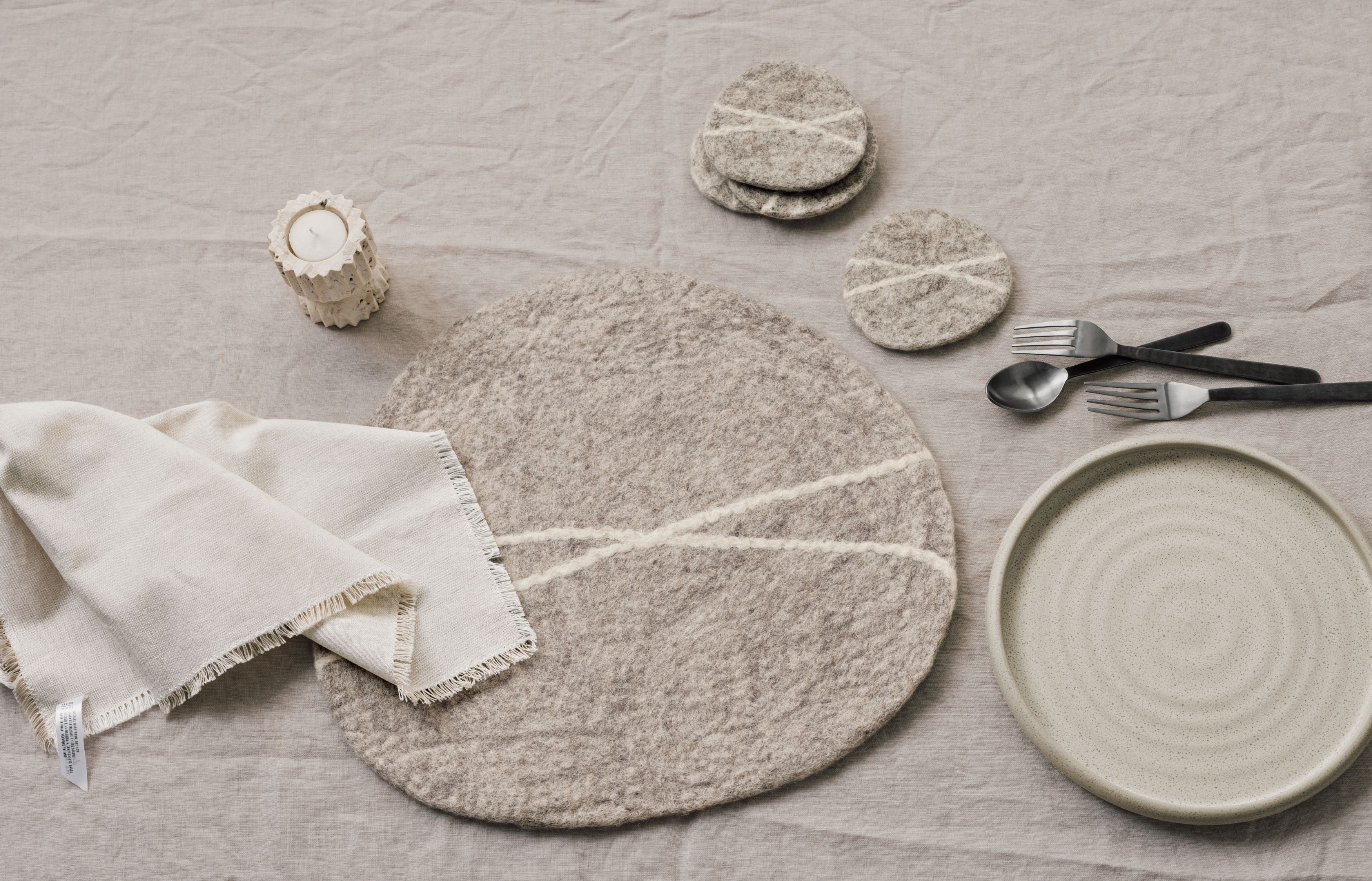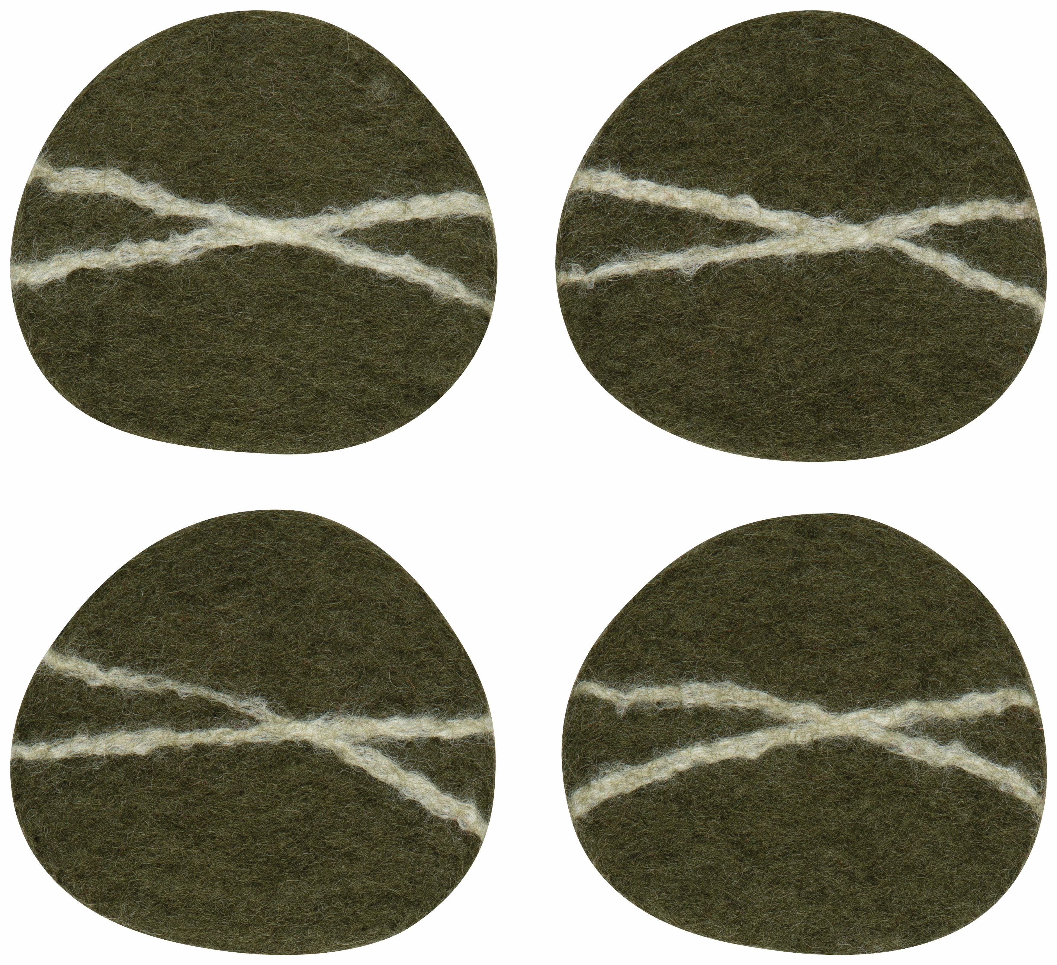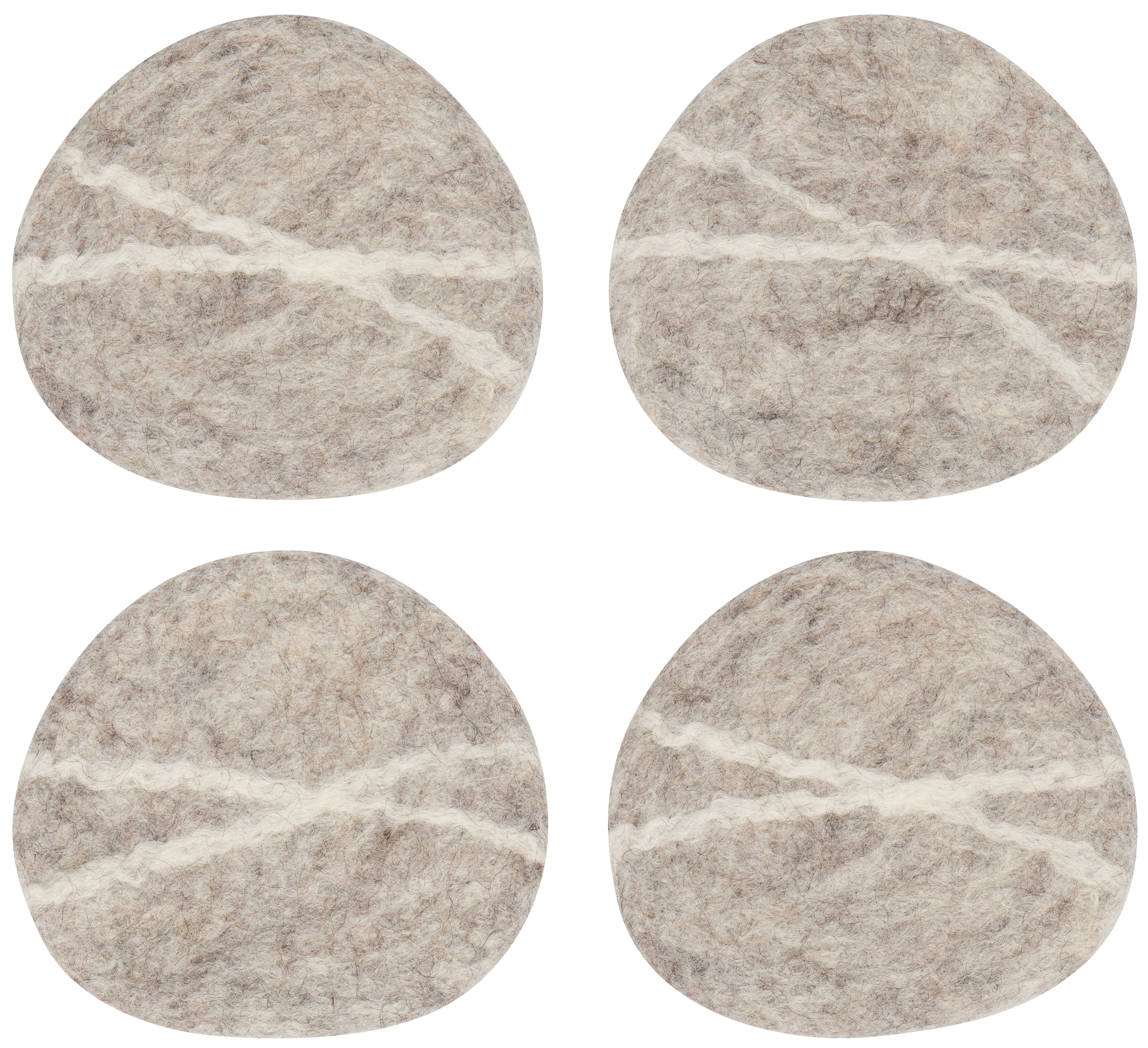 - Pebble-shaped and soft, our felted wool Striato coasters cushion drinks comfortably while adding an artisanal accent to any space.