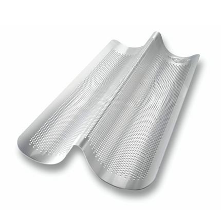 The USA PAN® 2-well Perforated Italian Loaf Pan provides home bakers with an easy way to bake warm, fresh, flaky Italian bread or baguettes. Bake a delectable, delicate loaf of Italian bread for the perfect pizza bread or flawless sandwich. The USA PAN® 2-Well Perforated Italian Loaf Pan features a perforated design to allow for even heat circulation, faster baking, and crispy crust. The pan surface is coated with a proprietary AMERICOAT® coating, a non-stick silicone, allowing you to easily release your baked goods from the pan. AMERICOAT® is made without PTFE, PFOA and BPA. USA PAN®'s professional grade bakeware helps everyday home bakers produce professional grade baked goods. USA PAN® is a Bundy Family owned company, based in the Greater Pittsburgh, Pennsylvania area.