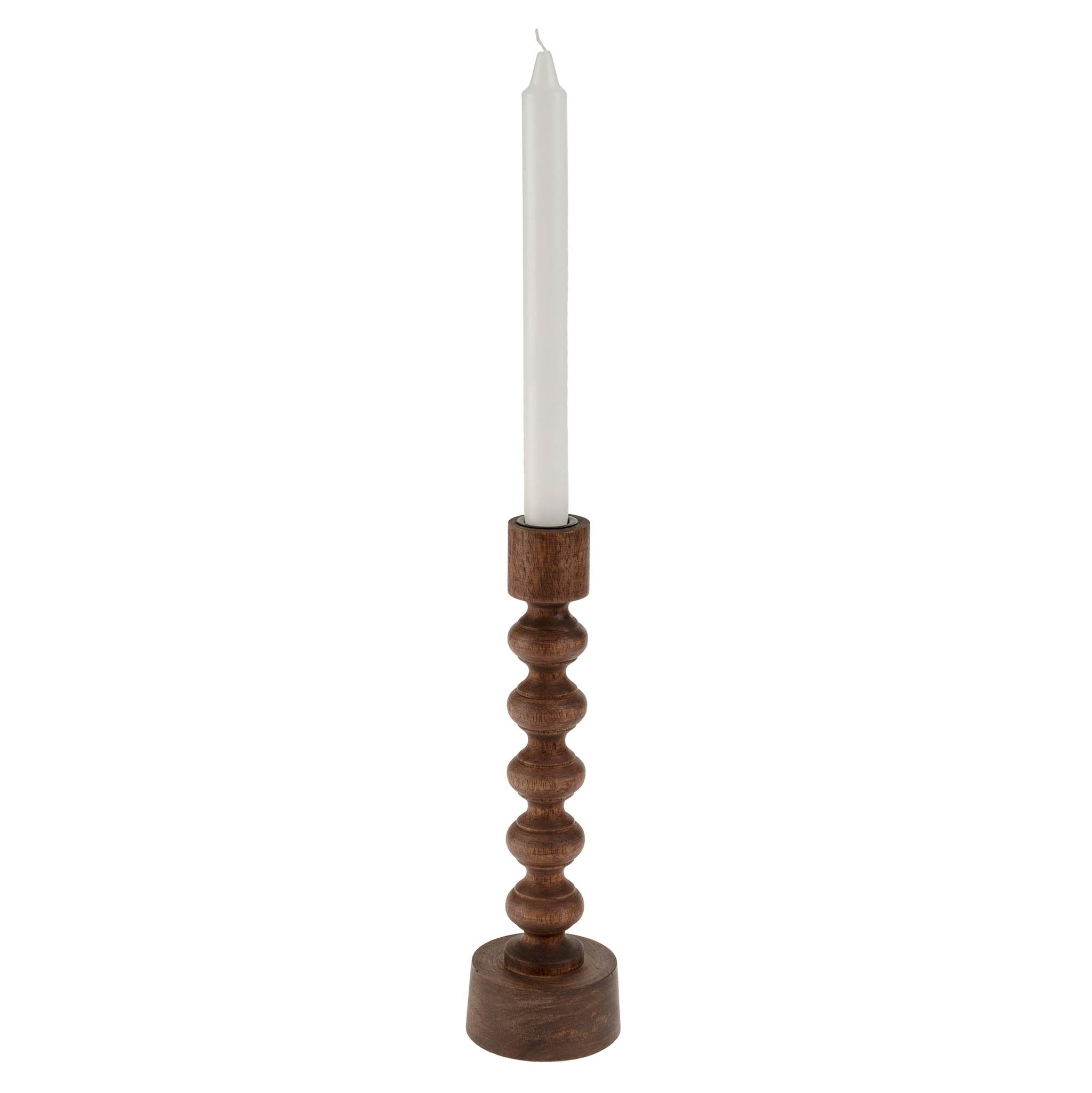 The Large Woodspun Candle Holder is a beautifully handcrafted piece made from sustainably sourced mango wood. Featuring a rich dark wood stain, its elegant form and natural grain bring warmth and sophistication to any setting. Designed to hold taper candles, this candle holder adds a refined touch to dining tables, mantels, or styled vignettes while celebrating expert craftsmanship and sustainable materials.