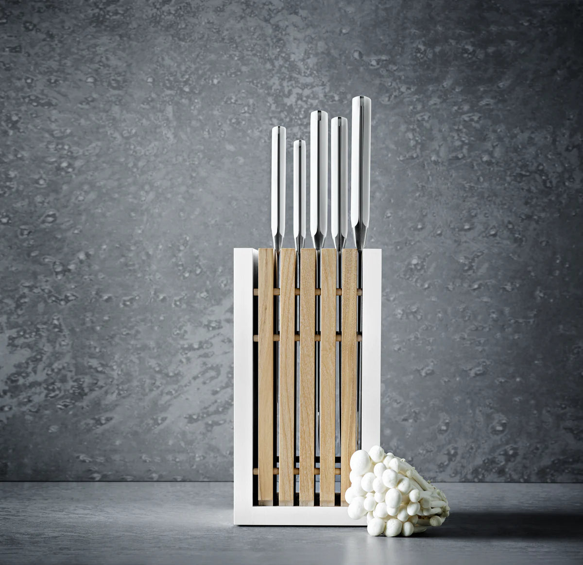 The Classic White Designer Block features a unique design with an integrated 5-slot compartment made of oiled ash wood for a block that is both functional and elegant. Thanks to the open design, knives can easily be inserted or removed and blades of different sizes can be combined and stored safely. The frame is made from white lacquered beech for a colour contrast that enhances contemporary kitchens and complements Scandinavian inspired design.